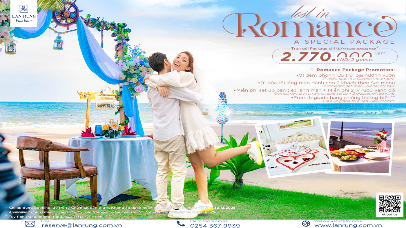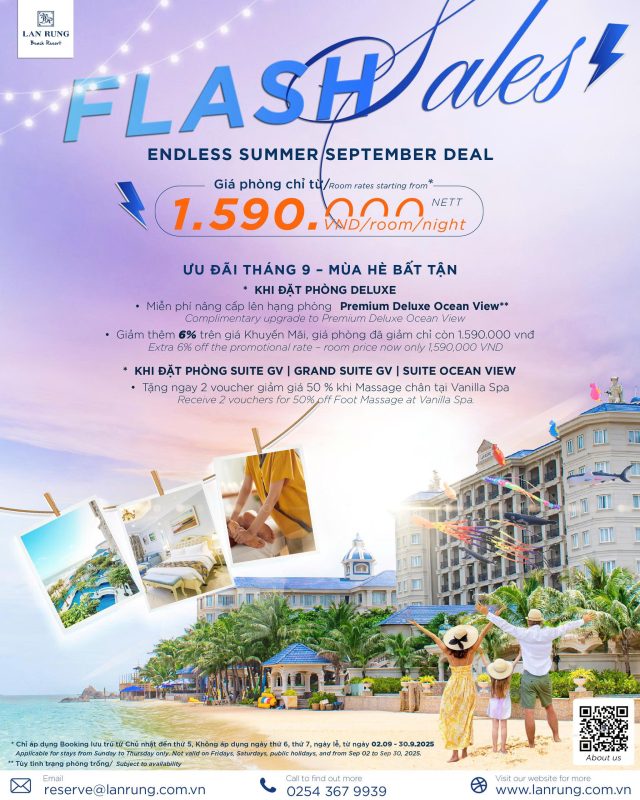 SEA BREEZE GETAWAY Are you ready for a holiday full of ocean vibes? Starting from only 2,950,000 VND/2 guests, Lan Rừng Beach Resort offers a special package for you to enjoy every moment of relaxation. Package includes: 01-night stay in a Garden View room 01 Set Menu lunch or dinner for 02 guests Complimentary round-trip…