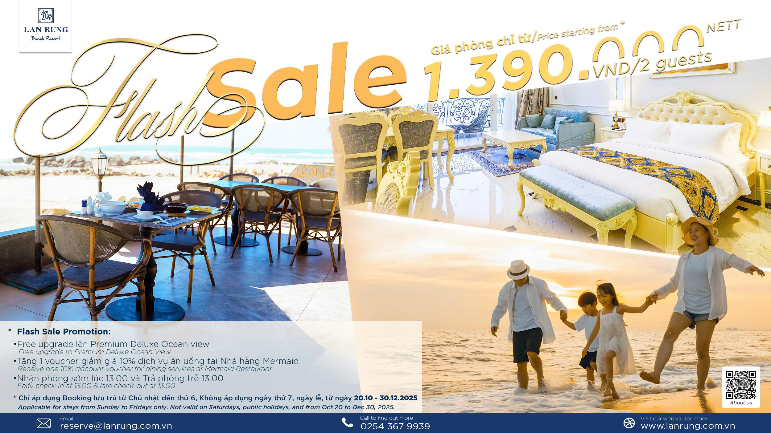 Lan Rừng Beach Resort invites you to an exclusive getaway at only VND 1,390,000 for 2 guests, accompanied by a range of premium privileges: