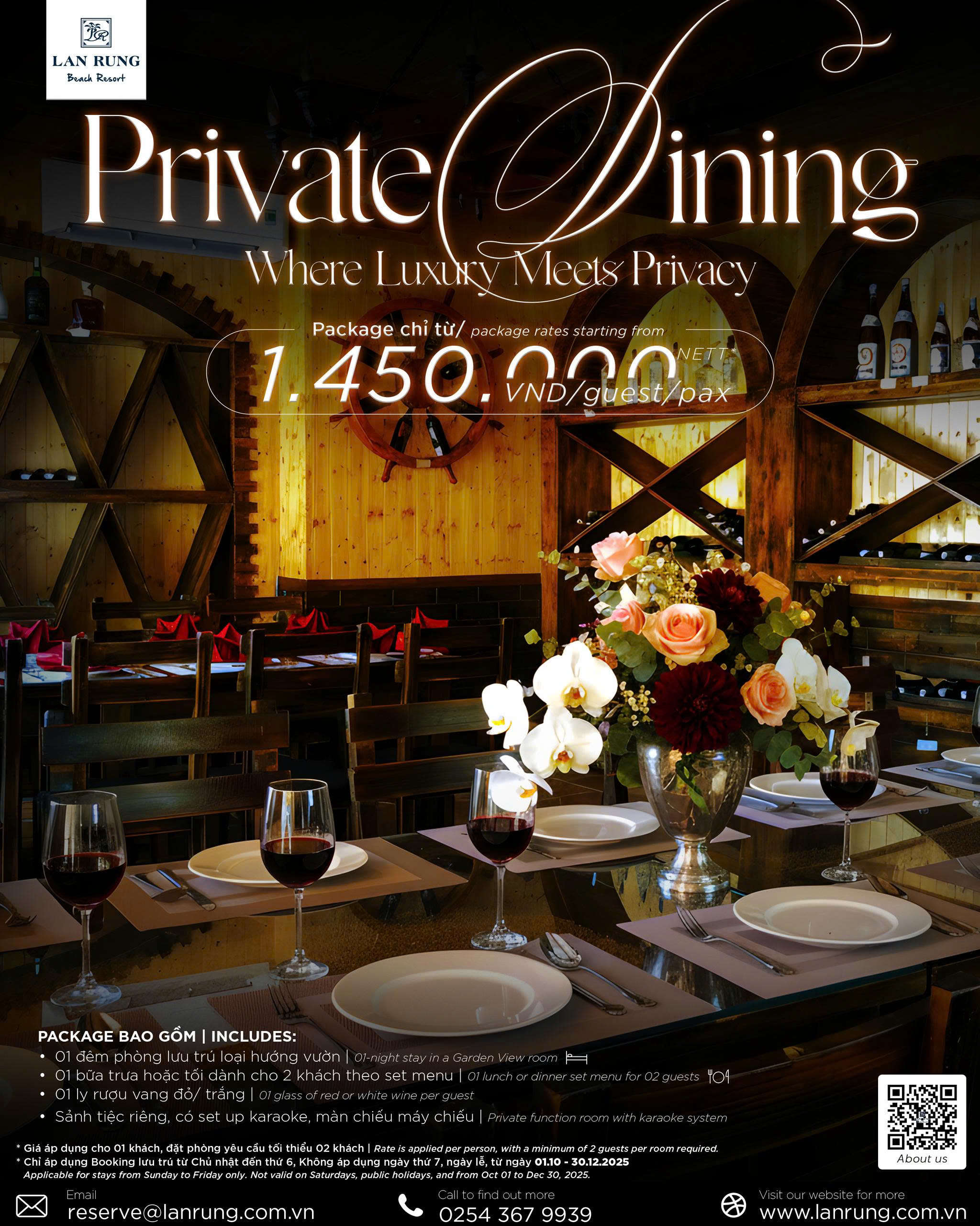 🌊 Lan Rừng Beach Resort – where luxury and privacy blend seamlessly to create an unforgettable dining experience.