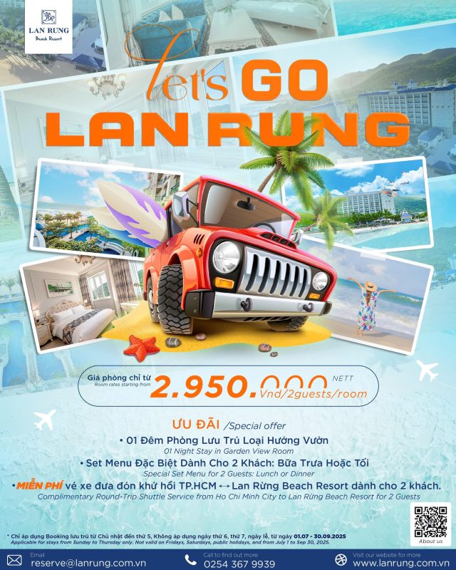 Hãy để tiếng sóng rì rào và ánh nắng vàng dịu nhẹ khơi dậy mọi giác quan trong bạn. Lan Rừng Beach Resort mang đến ưu đãi nghỉ dưỡng đặc biệt chỉ 1.390.000 VNĐ/2 khách, cùng những đặc quyền đẳng cấp: Miễn phí nâng hạng lên phòng hướng biển sang trọng Tặng voucher 10% cho…